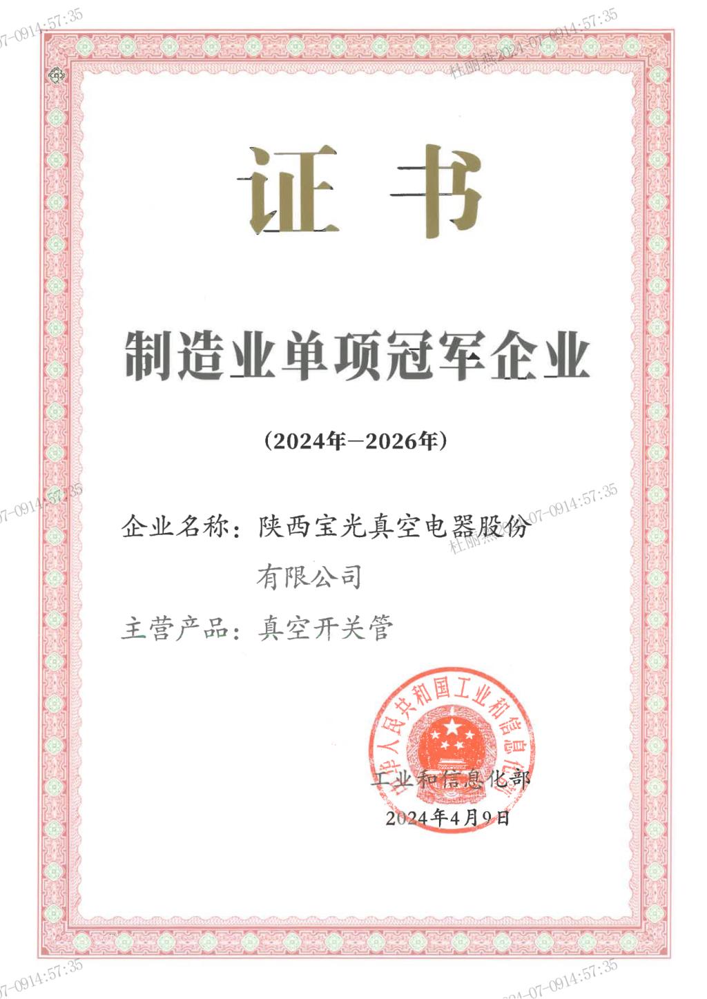 - 寶(bǎo)光牌真空滅(miè)弧室被授予陝(shǎn)西省名牌產品稱號