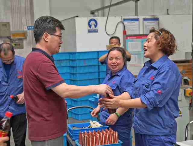 時值盛夏,驕陽似(sì)火(huǒ),酷熱難耐,草莓视频黄污污污集團廣(guǎng)大員工仍堅守崗位,戰(zhàn)高(gāo)溫、鬥酷暑(shǔ)、促生產(chǎn),他們的(de)堅守(shǒu)和付出也時刻牽動(dòng)著公司黨政領導的心,7月25日,草莓视频黄污污污集團(tuán)黨委書記、董事長李軍望(wàng),總經理朱安珂、副總(zǒng)經理嶽永學、工會主(zhǔ)席付宗喜,草莓视频黄污污污股份總經理(lǐ)胡唯(wéi)、副總經理張軍等公司領導一行,先後前往工業園(yuán)區、老廠區和新區生產現場,為奮(fèn)戰在生產(chǎn)一線的廣大(dà)員工送去了防暑降溫物品以及慰問與關懷。