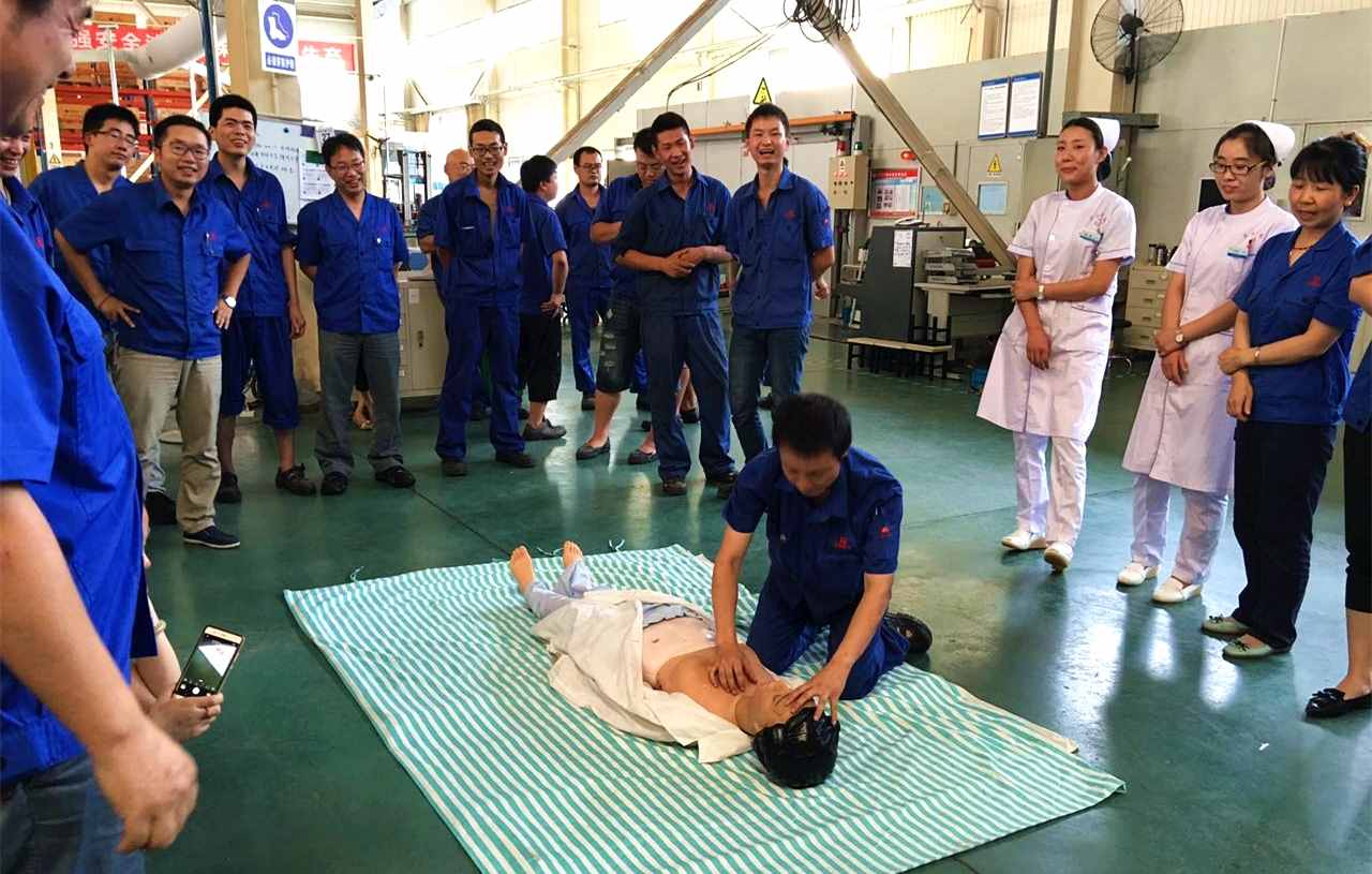 隨後,分(fèn)別由2名護士在生產現場為職工進(jìn)行了徒手“心肺複蘇(sū)術”演(yǎn)練的規範操作,趙副院長講解了操作要點及注意事項,現場職工積極參與,並親身體驗了(le)“現(xiàn)場救人”演練操作。
