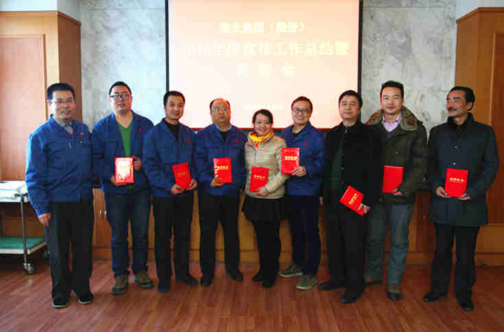 隨後,黨委工作部部長卓元周宣布了2015年(nián)度公(gōng)司宣傳工作先進單位及個人獲獎名單,並向獲獎單位和個人頒發了獎牌和榮譽證書。黨群黨支部、生產(chǎn)采購安全(quán)環保黨支部、技術與科技質量黨支部、C產品事業部黨支部(bù)、A產品事業部黨支部,獲得2015年度宣傳工作“先進(jìn)單(dān)位”榮譽稱號;謝元紀、王建民獲得2015年(nián)度“最佳通訊員”榮(róng)譽稱號;李國強(qiáng)、王永利、趙誌宏(hóng)、李世(shì)偉、董超、張磊、宋萍、麻仕勇,獲(huò)得2015年度“優秀通訊(xùn)員”榮譽稱號。