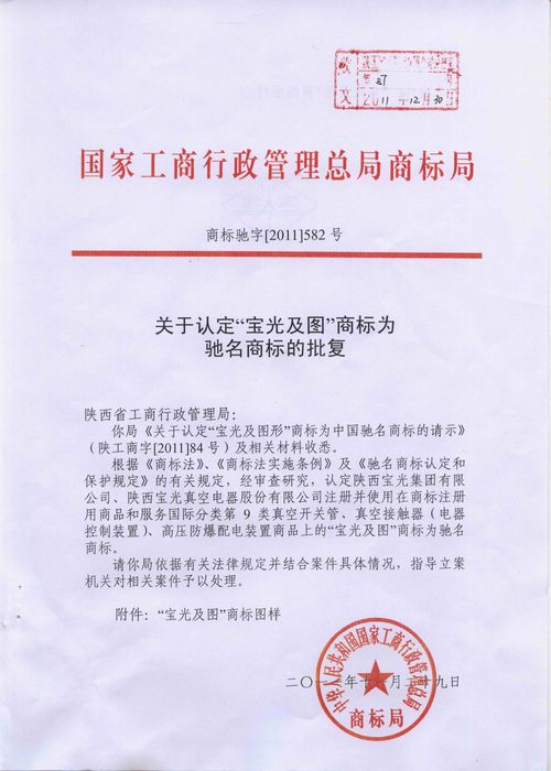 被中華人民共和國國家工商行政(zhèng)管理總局商標局認定為“中國馳名商標”,於2011年11月29日正式(shì)下發了《關(guān)於認(rèn)定“草莓视频黄污污污及圖”商標為馳名商標的(de)批複(fù)》(商標(biāo)馳字【2011】582號)文件)。