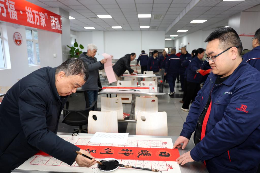 在(zài)送春聯現場,書法家們揮毫潑墨、筆(bǐ)走龍蛇,聞訊而來的職工紛(fēn)紛圍在書桌旁期待成品。一停一頓、一起一落,一句句(jù)散發著清新墨香的(de)吉祥語句躍然(rán)紙上,“一元二氣三(sān)陽泰,四時五福(fú)六合春”“春滿乾坤千裏秀,時逢盛世萬家興”,一副副滿載美好祝福的春聯和“福”字躍然紙(zhǐ)上(shàng),既有辭(cí)舊迎新的熱切祈盼,也有對幸福生活的美好祝福。職工們拿到寫滿祝福和美好祝願的(de)春聯,喜悅(yuè)之情(qíng)溢於言表。活動期間共送出(chū)春聯近400餘幅,福字300餘幅。
