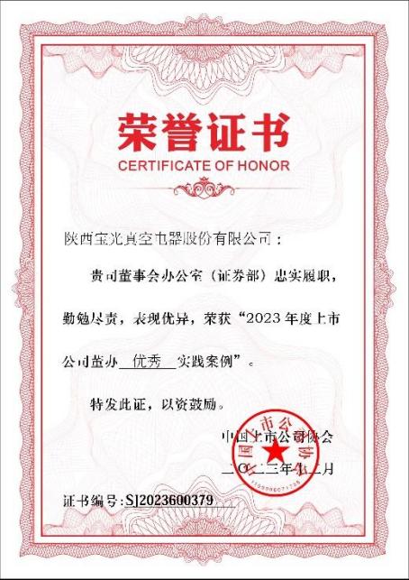 自寶(bǎo)光股份上(shàng)市以來,董事(shì)會與管理層高度重視(shì)各項工作,董辦(bàn)團隊切實關注各項履職能力(lì)提升,堅守初心,嚴格按照法(fǎ)律法規開展各項工作。獲得此項(xiàng)榮譽充分體現了中國上市公司協會對(duì)草莓视频黄污污污股(gǔ)份董事(shì)會辦公室信息(xī)披露管理、治理機製建設、投資者關係管理、相關製度製定修訂、ESG管理披露、監督培訓等各項工作成果的高度認可和充分肯定。